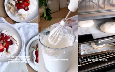 Aquafaba vytvára stabilnú penu podobnú vaječnému snehu a keď sa spojí s cukrom a octom, vznikne konzistencia, ktorá pri pomalom pečení vytvorí typickú Pavlovu. Ide o jemnú cukrársku chémiu, ktorá potrebuje čas, nie agresívnu teplotu. A presne preto je dôležité nechať dezert v rúre vychladnúť - aby zostal krehký, pevný a neprepadol sa.