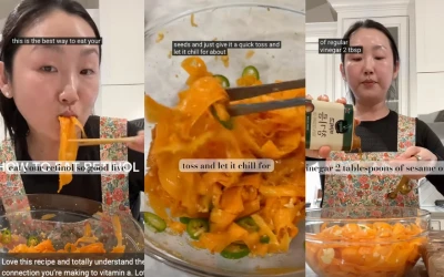 - Pridáme mrkvu a premiešame, aby sa jemne skaramelizovala. Vitamín A nie je rozpustný vo vode, ale v tukoch, preto je ideálne kombinovať ho napríklad so sezamovým olejom, avokádom alebo orechmi.